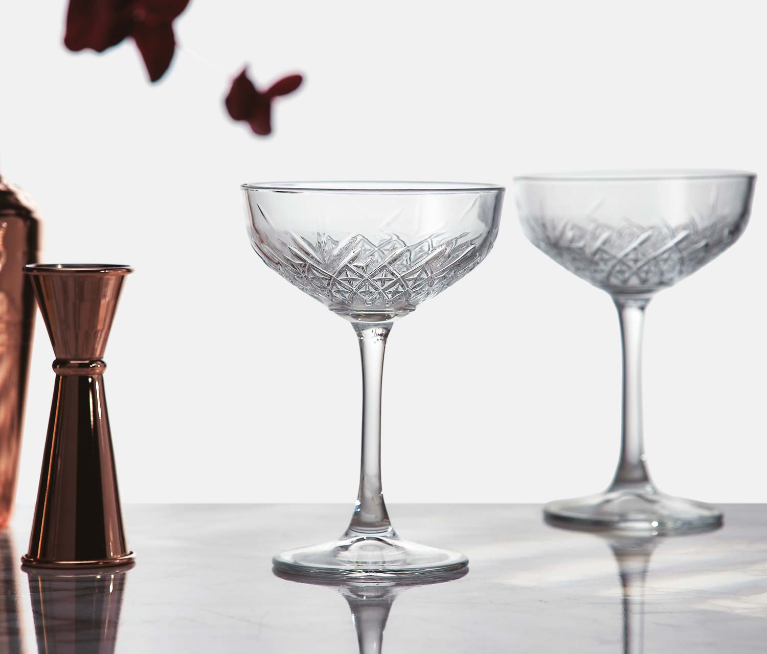 Bring a little Deco drama to your drinkware. The Pelham Deco Coupe Cocktail Glass Set is vintage-inspired, party-ready, and made to shine at every pour.