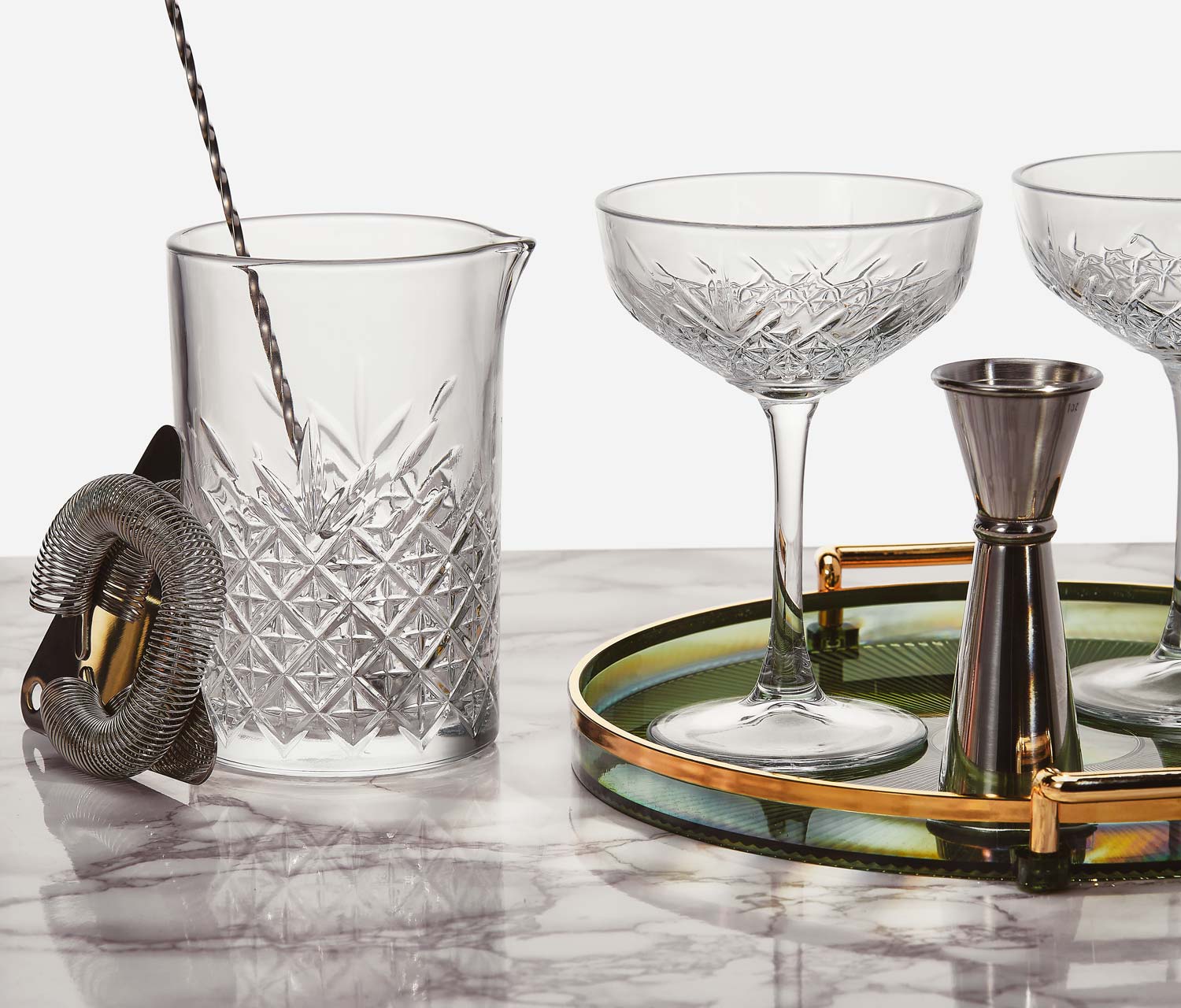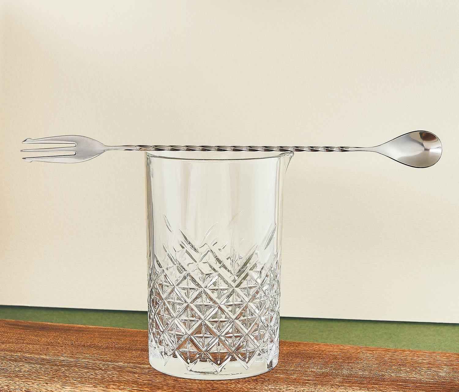 * Pair it with the Pelham Art Deco Bar Set to complete your home bar. This set includes a quality mixing glass, jigger, bar spoon, and strainer.