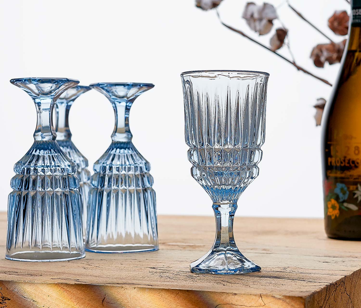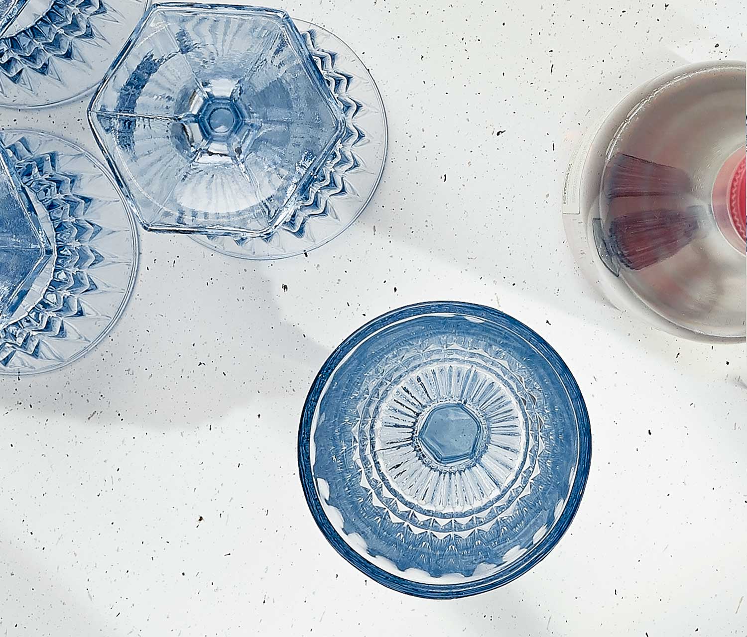 Bring a splash of color and retro flair to your table with these vintage Fostoria wine and water glasses from the 1940s-50s. The Heritage Blue set showcases a stylish studded design and a unique hexagonal base, perfect for adding a playful touch to any gathering or “Happy Hour.” These glasses mix classic American craftsmanship with a fresh, modern vibe that’s sure to brighten up your celebrations.