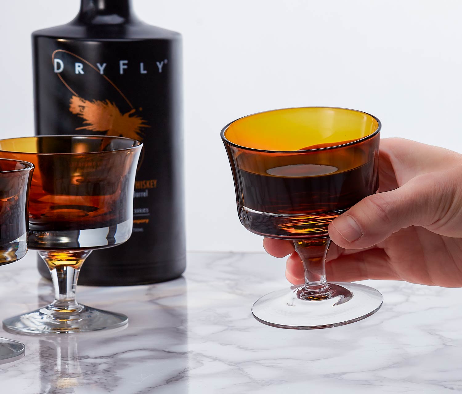 Featuring a delicious rich brown hand blown glass hue paired with clear stems, these gorgeous glasses are perfect for champagne cocktails, mocktails, after dinner cognacs or even your favorite desserts.