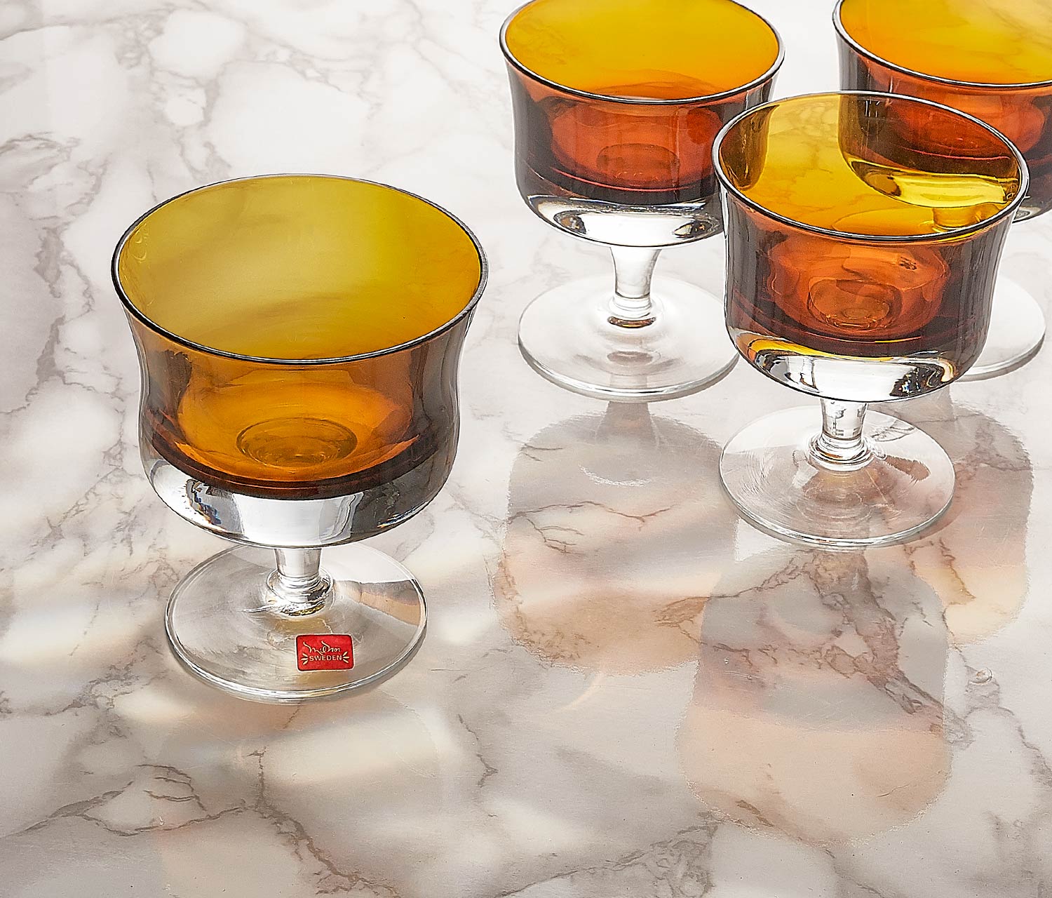 Add a splash of caramel and retro flair with these rare Swedish 1973 - 1980's vintage Mirage Brown Milnor (in collab with Denby) coupe/champagne glasses.