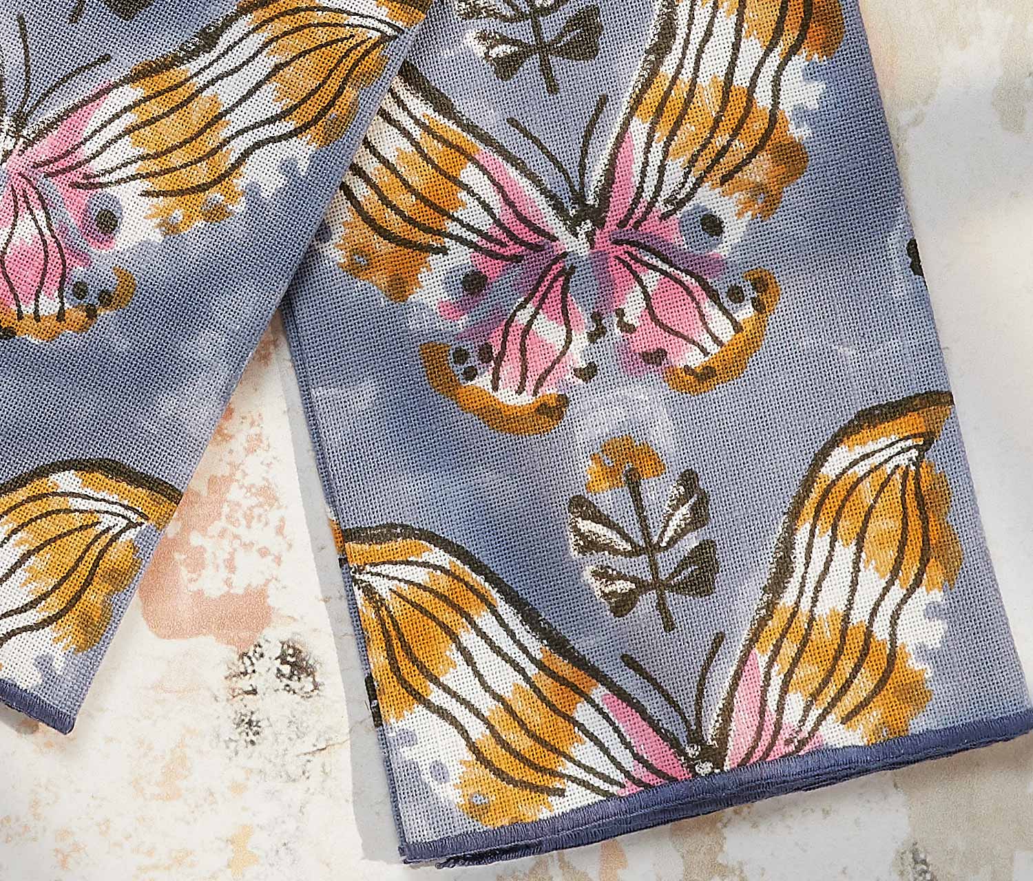 Aurora Jacquard Block Print Butterfly Kitchen Towel Set