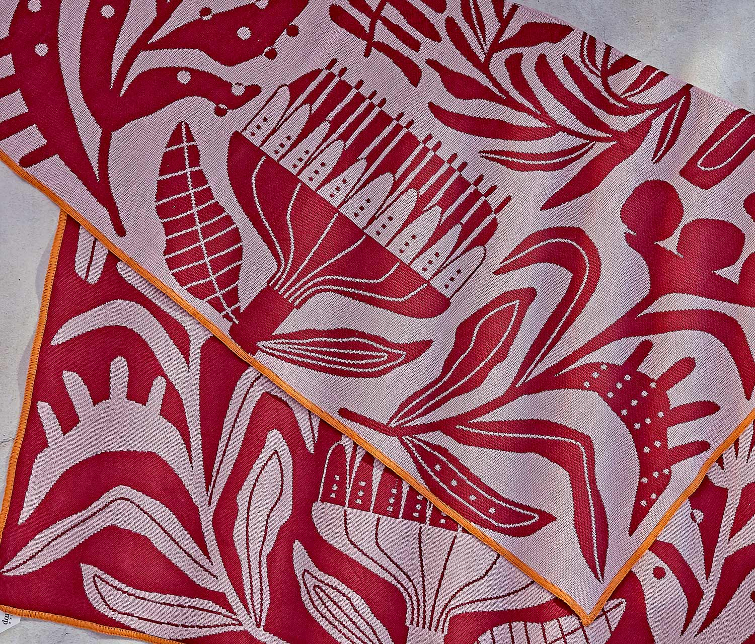 Set of 2: Venus Flytrap Maroon Red Cotton Jacquard KitchenTowels