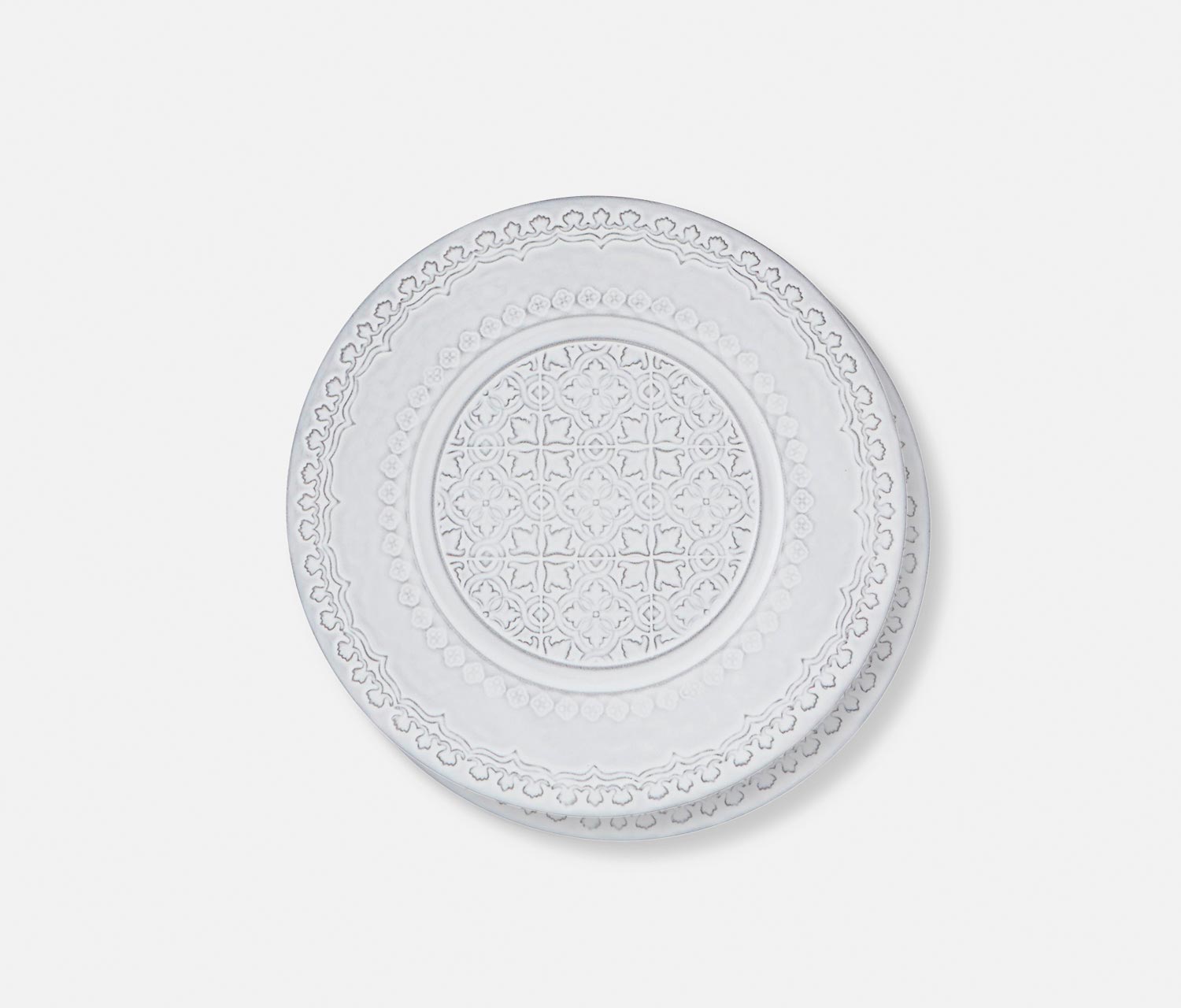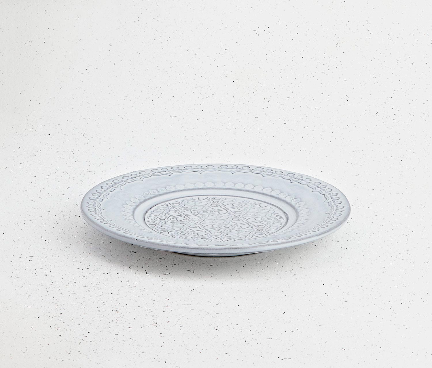 These earthenware salad/side plates are embellished with an Antique White wash and geometric tile design, then hand finished in a rustic glaze making them great for any Boho bungalow & perfect for serving your favorite salads, side dishes, snacks or desserts any night of the week.