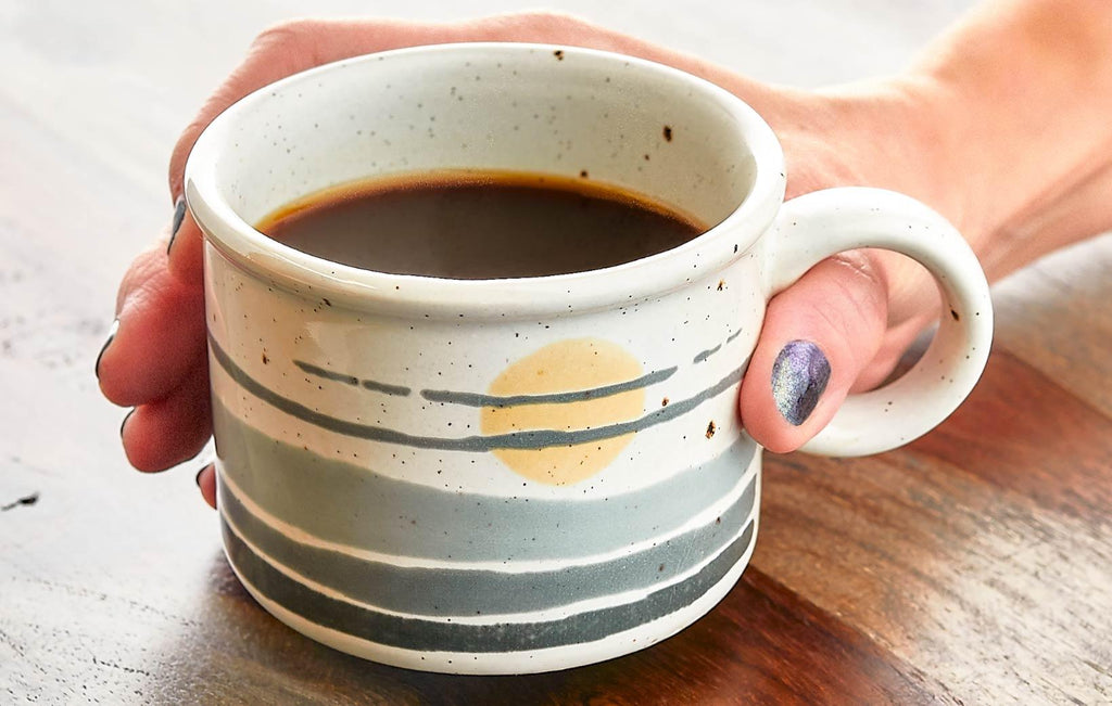 We love These fun vintage mugs with colorful hand-painted patterns and retro hues. Created by Roy Midwinter founder of the British ceramic company Midwinter.(50s-70s)