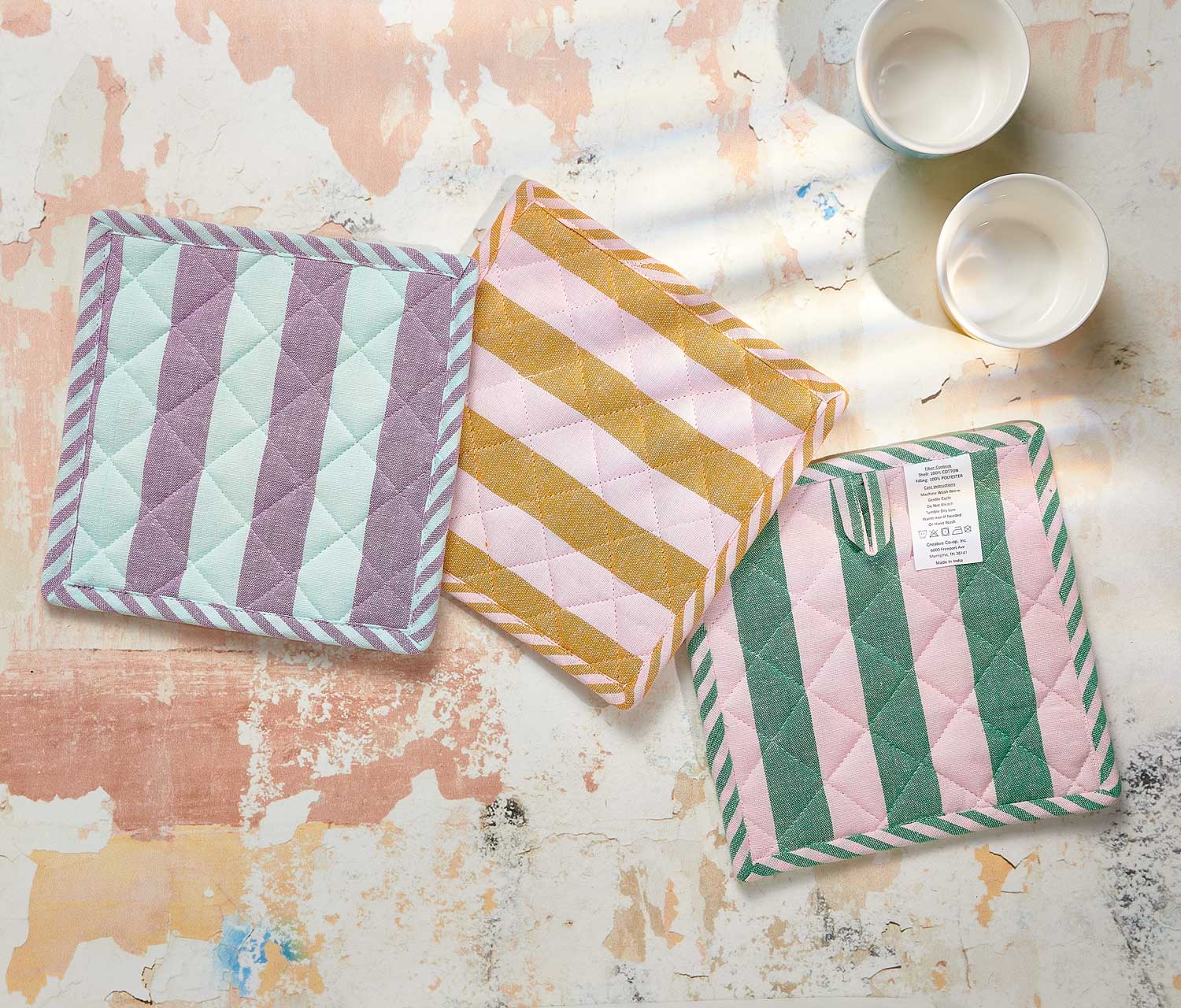 Set of 3: Saltwater Taffy Woven Stripe Square Potholders: See options in dropdown