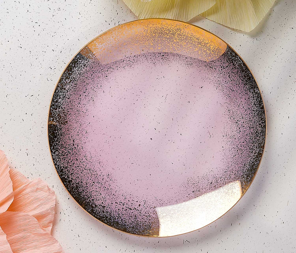 Vintage Dorothy Thorpe Pink & Gold Fleck Glass Plates: See set options in dropdown
