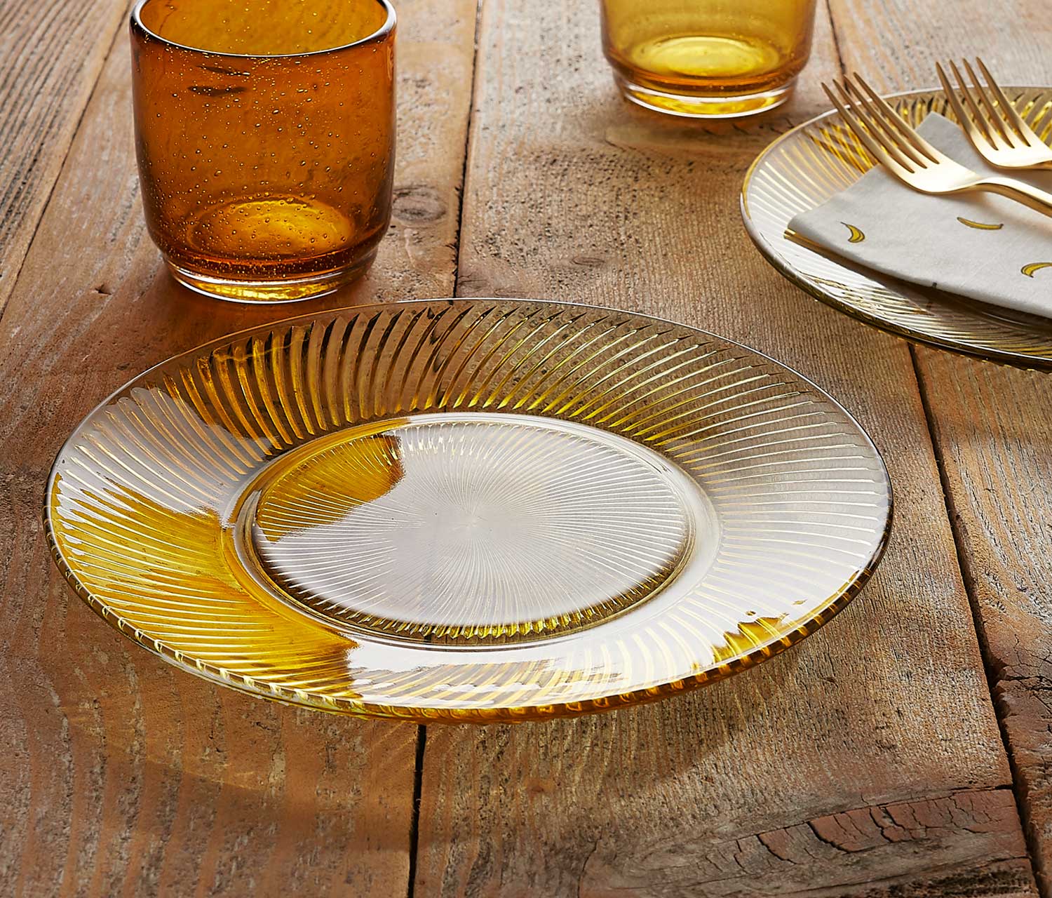 Brighten up your table or party with these stunning Amber Diana Swirl depression glass dinner plates from Federal Glass Co. Featuring a dazzling golden hued pinwheel swirls, this set of four brings a cheerful, vintage vibe that’s sure to add a splash of sunshine to any occasion!