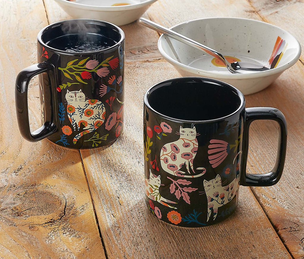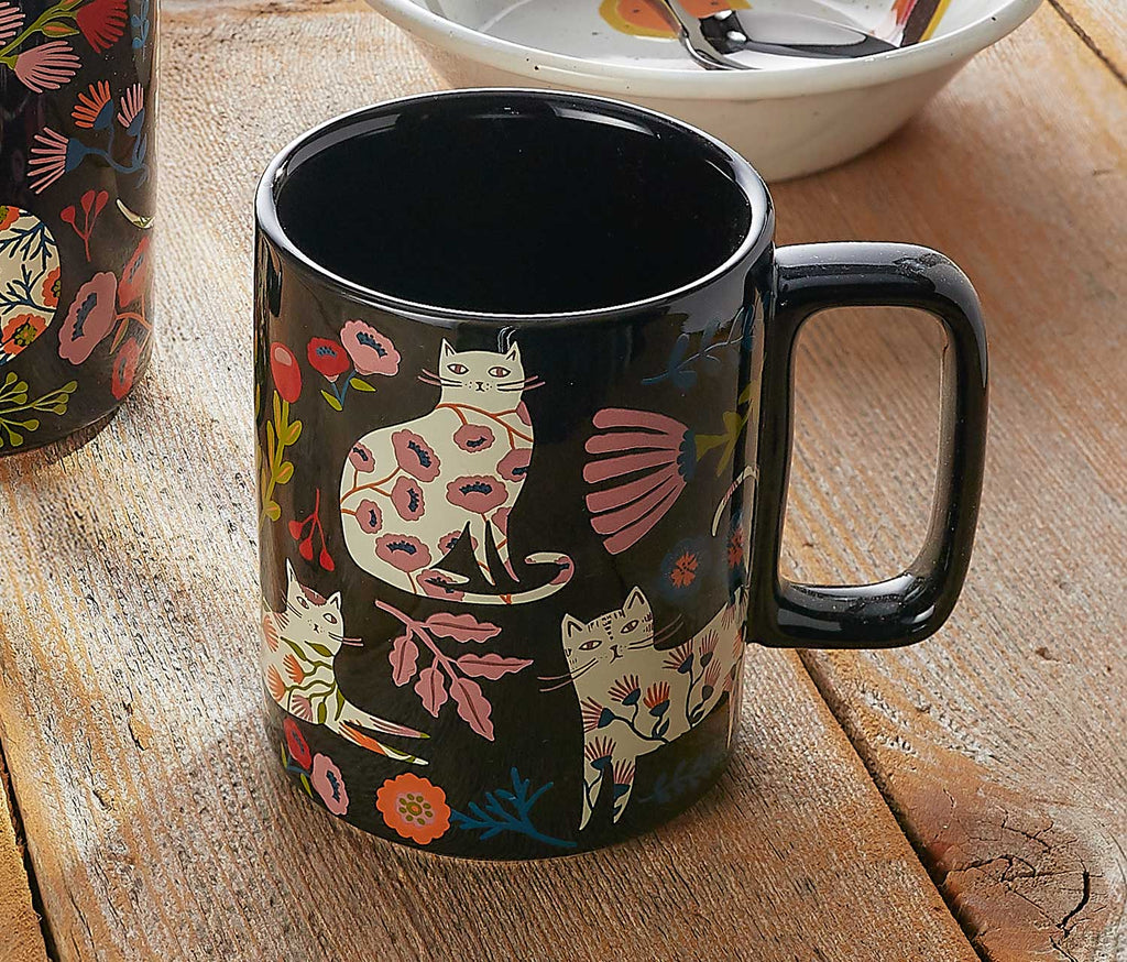 Featuring a sleek rectangular handle for a modern twist, these 14 oz mugs are crafted from high-quality, lead-free stoneware and are both dishwasher and microwave safe. Purr-fect for your morning coffee, afternoon tea, or a cozy nightcap, they bring a delightful dash of whimsy to every sip.