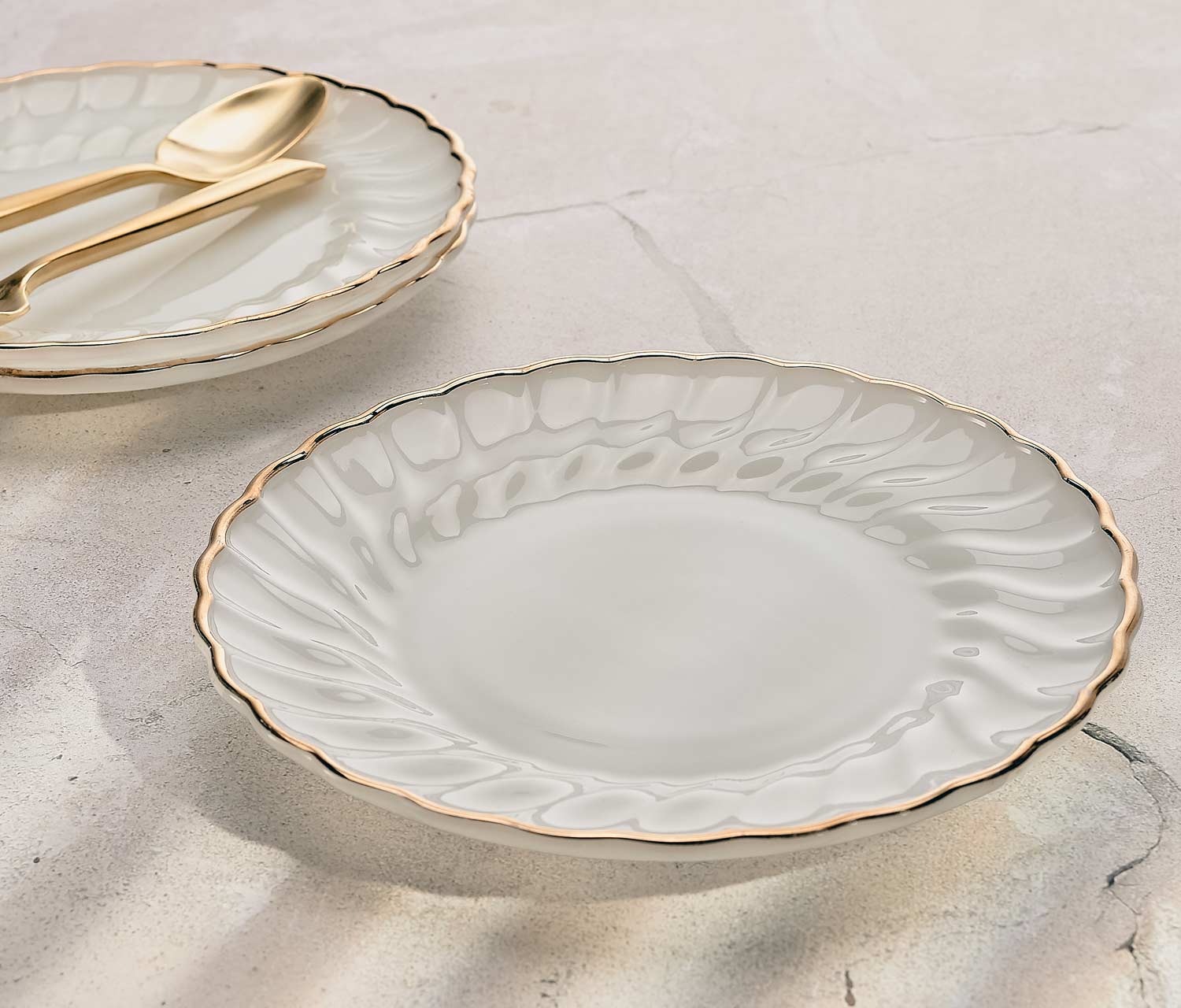 Vintage Fire King Golden Shell Swirl Milk Glass Dessert Plates: Set of 3