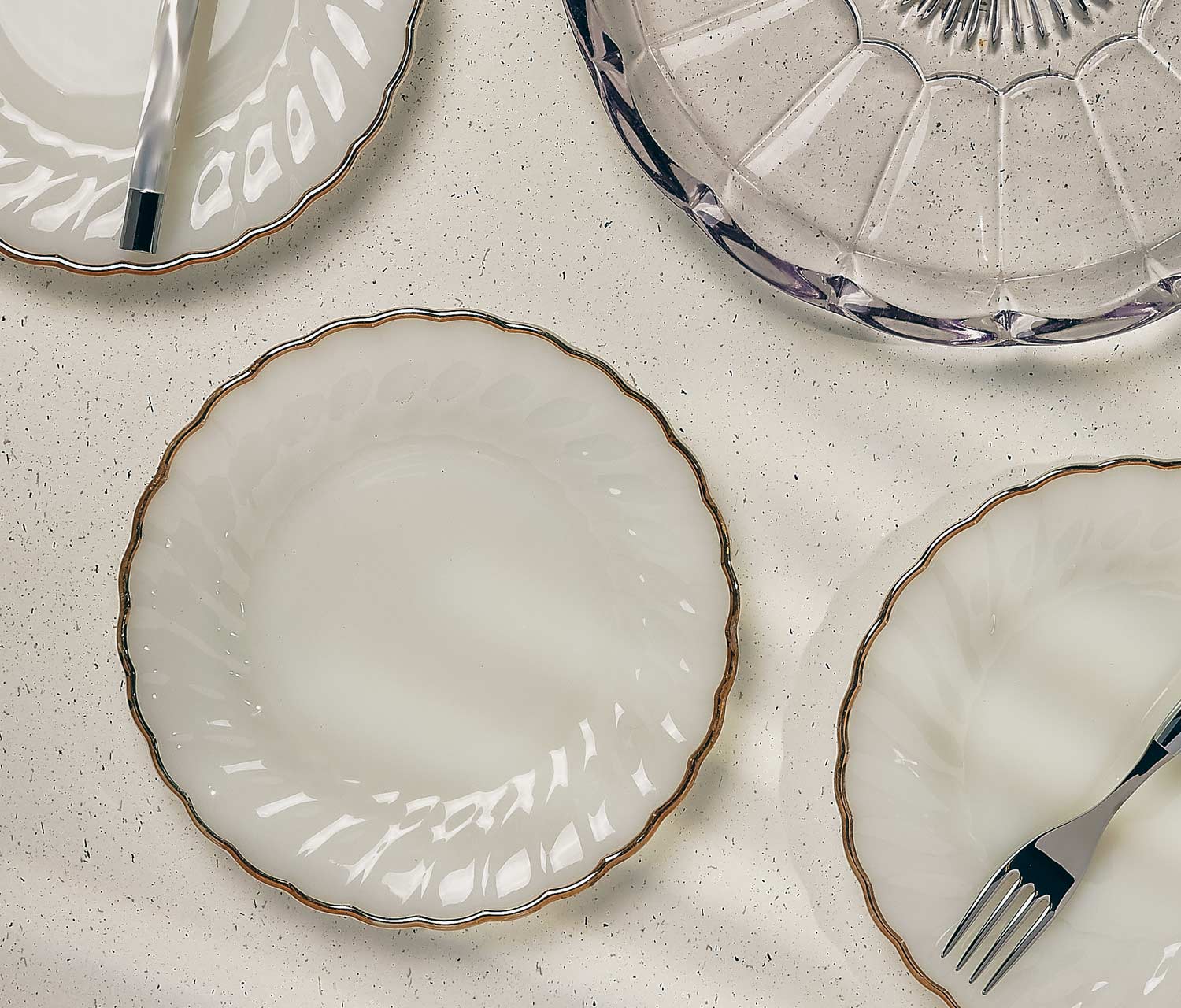 Set of 3 : Vintage Fire King Golden Shell Milk Glass Dessert Plates
