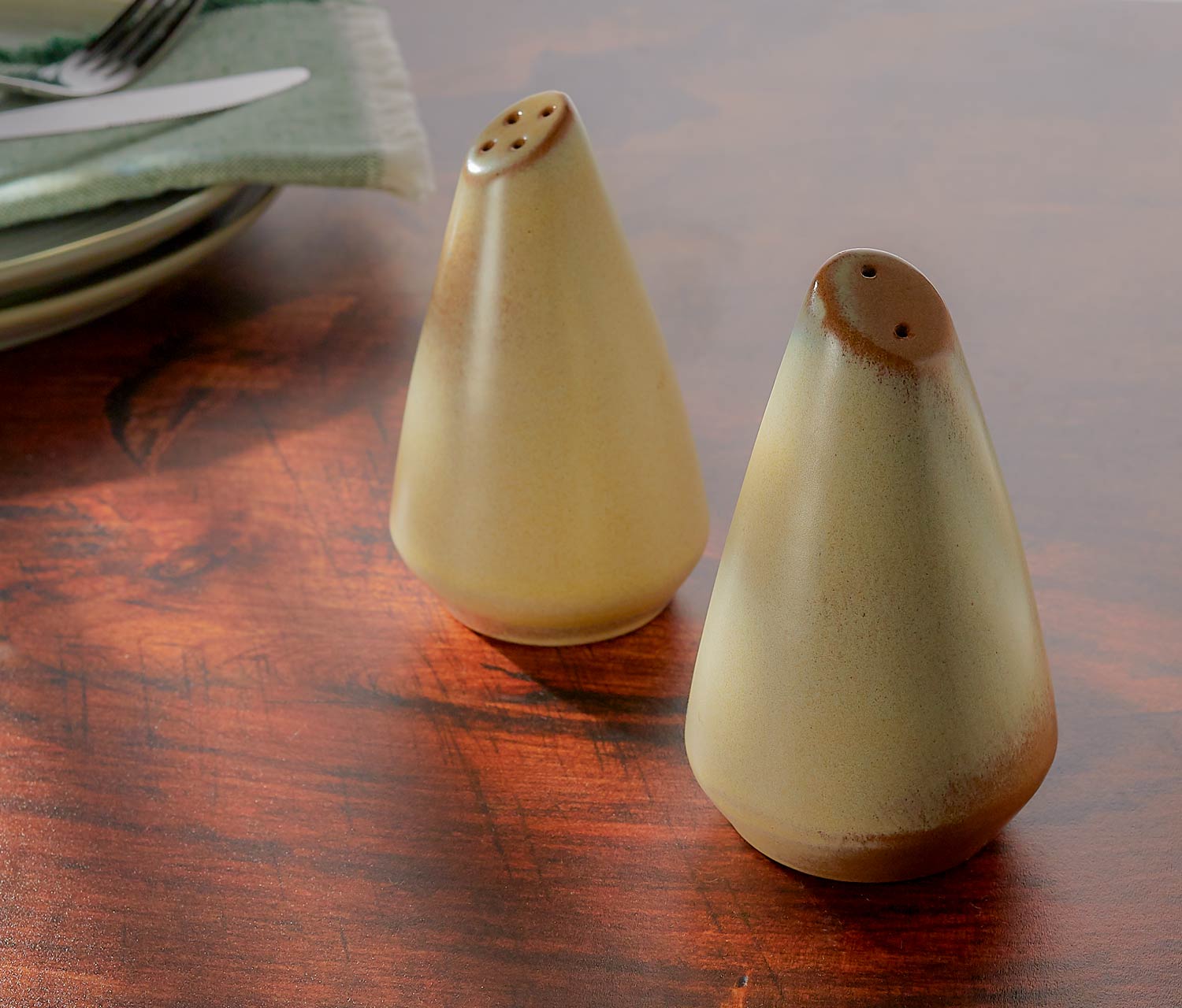 Add a pop of Mid-Century cool to your table with this vintage Frankoma Plainsman Desert Gold stoneware pottery shakers