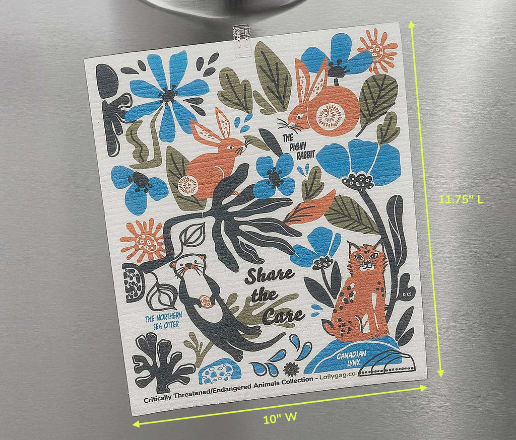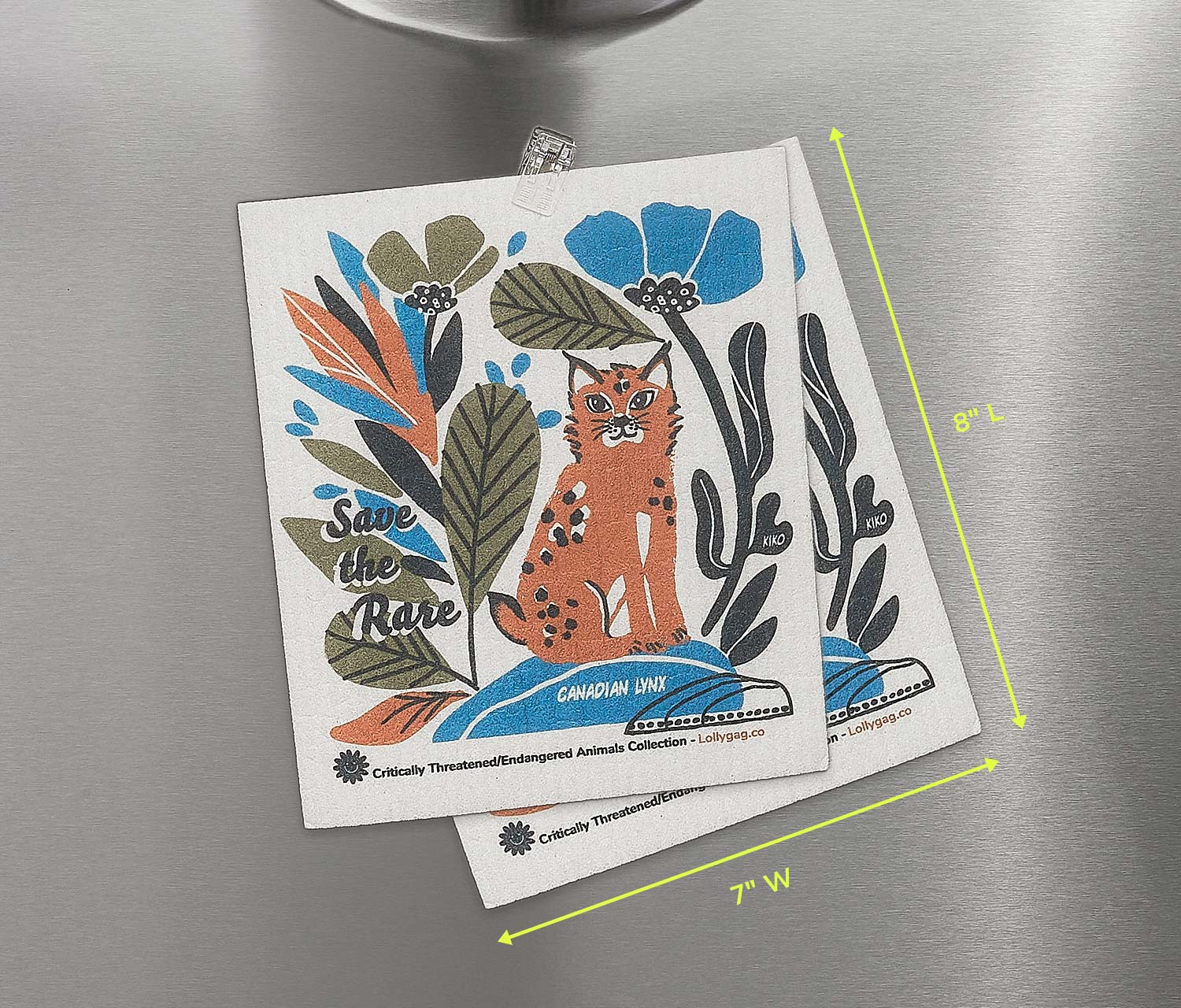 Let nature’s playful wonders come into your kitchen and brighten your home with our signature PNW Fading Fantastical Wildlife Collection—the Canadian Lynx Swedish dishcloths and drying mats. Each cloth features a beautiful hand-drawn illustration inspired by our local Pacific Northwest’s critically threatened and endangered furry friends.